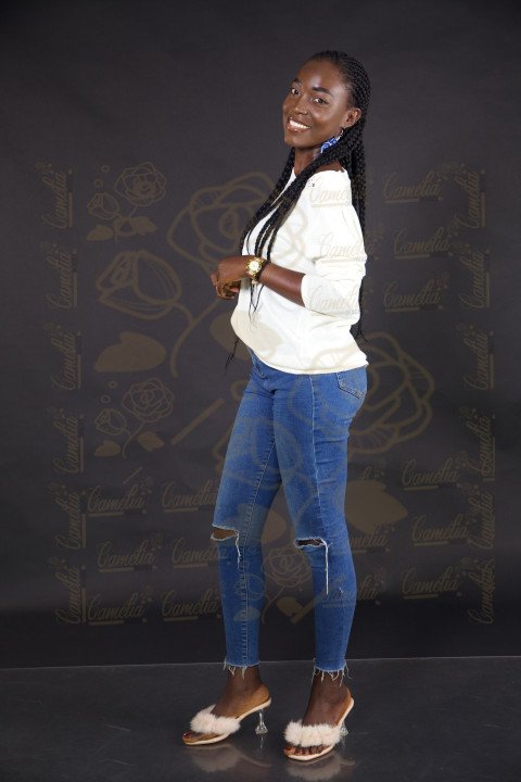 Jeune petite fille africaine belle expression visage robe blanche fleurs gestuel danse