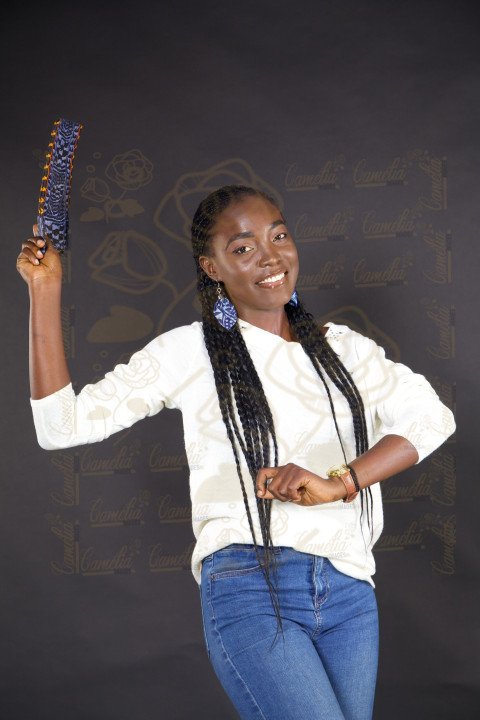 Femme affaire africaine teint veste noir expressions visage gestuel