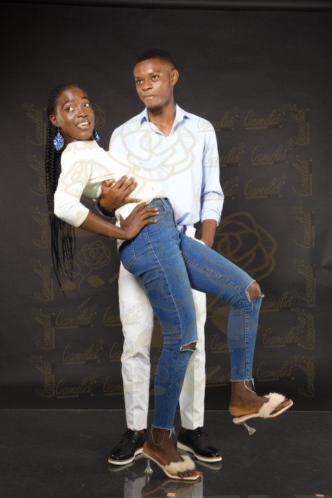 Père et fils teint noire claire paire noire chaussure blanche veste verte