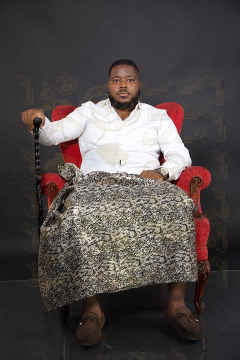 Homme noir africain tenue traditionnelle assis fauteuil rouge