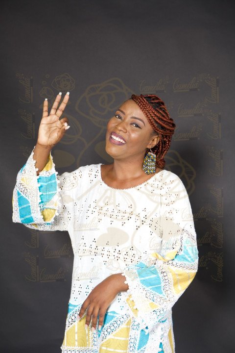 Femme belle sourire rouge a lèvre rastas boucles afritude tenue basin
