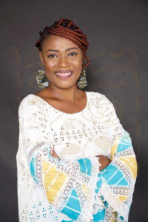 Femme belle sourire rouge a lèvre rastas boucles afritude tenue basin