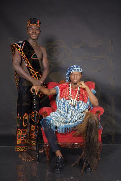 Jeune femme robe colliers boucles traditionnelle teint caramel