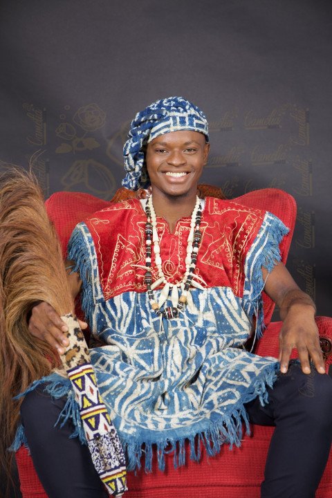 Jeune homme africain uniforme traditionnelle grand sourire ,