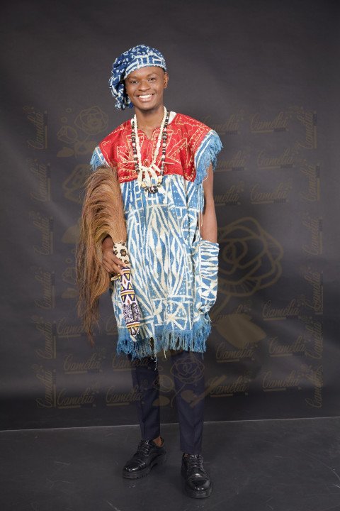 Jeune Homme africain mignon polo blanc culotte jaune chaussettes et tennis blanches
