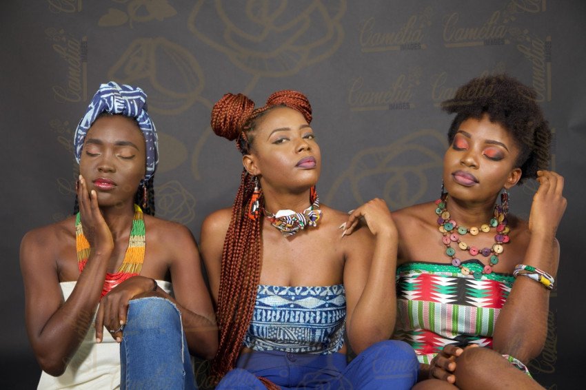 Famille Africaines belles Femmes Pagnes Afro Makeup causeries
