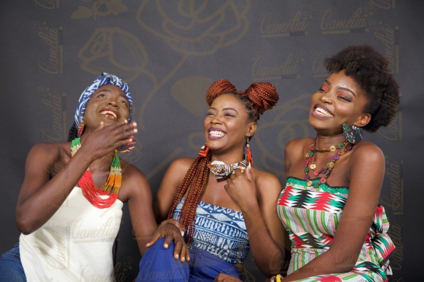 Femme africaine cheveux noire bouquet fleurs parfum jaune vert rose