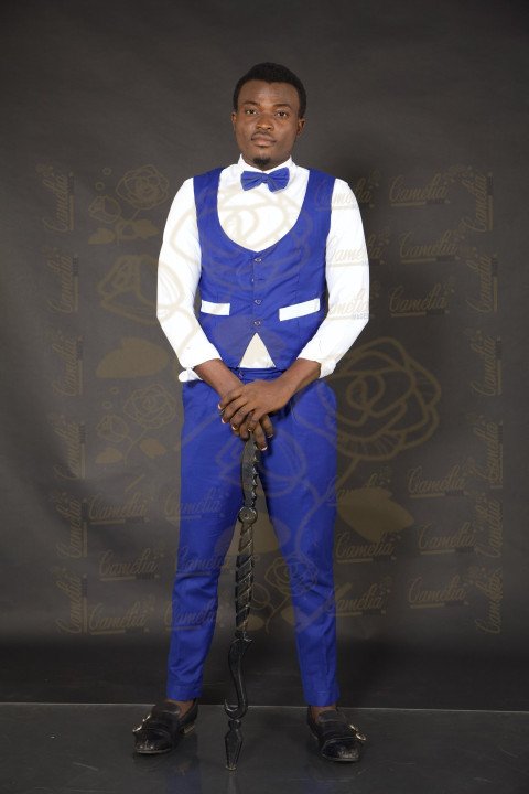Papa africain ensemble veste bleu ciel paire noire ceinture