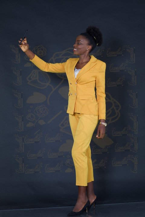 homme jeune noir africaine belle sourire costume jaune uniforme business finance talon noir responsable montre coifure afro telephone communication beauté technologieSimilar Photos