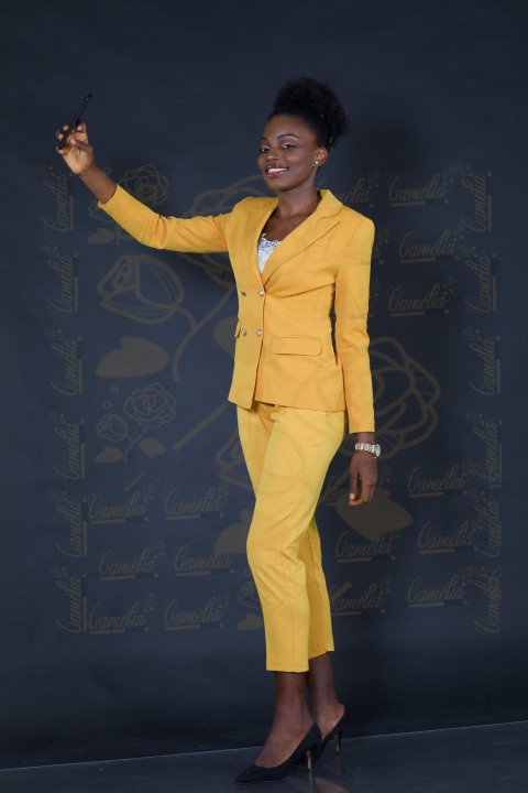 femme jeune noir africaine belle beauté jolie joyeuse paix costume couleur jaune responsable busiSimilar Photos