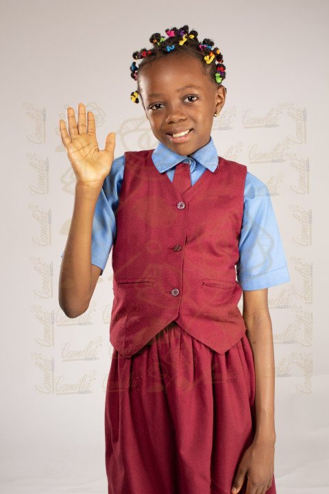 Jeune petite écolière tenue classe africaine salutation teint claire