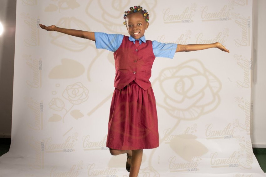 Jeune petite fille Africaine tenue de classe coiffure matobo gestuel salutation