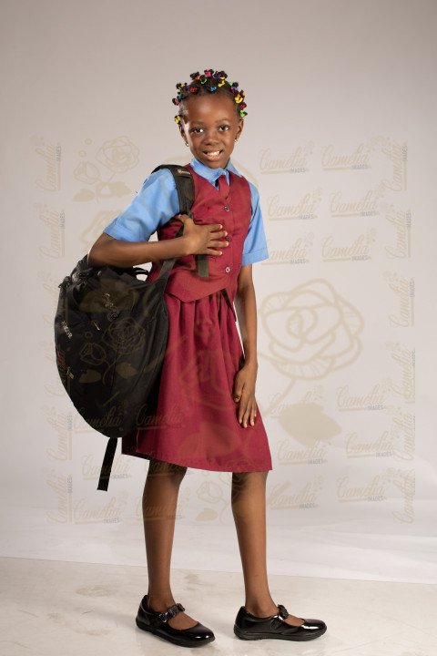 Jeune petite écolière Africaine tenue classe belle expression gestuel