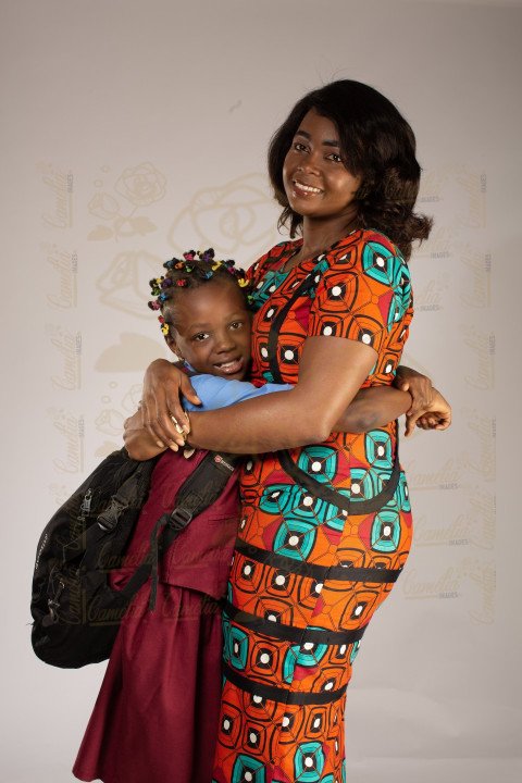 Petite écolière tenue classe chaussure noir maman africaine sourire gestuel
