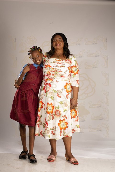 Petite écolière tenue classe chaussure noir maman africaine sourire