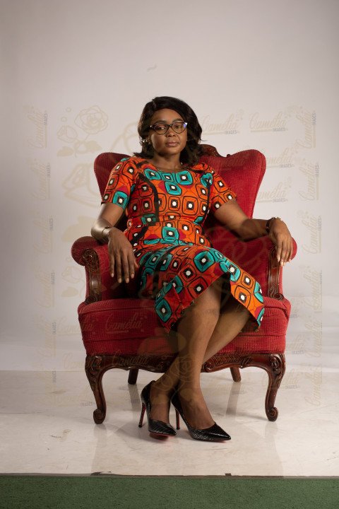 Femme Affaire fauteuil reine couleur rouge pieds croisés