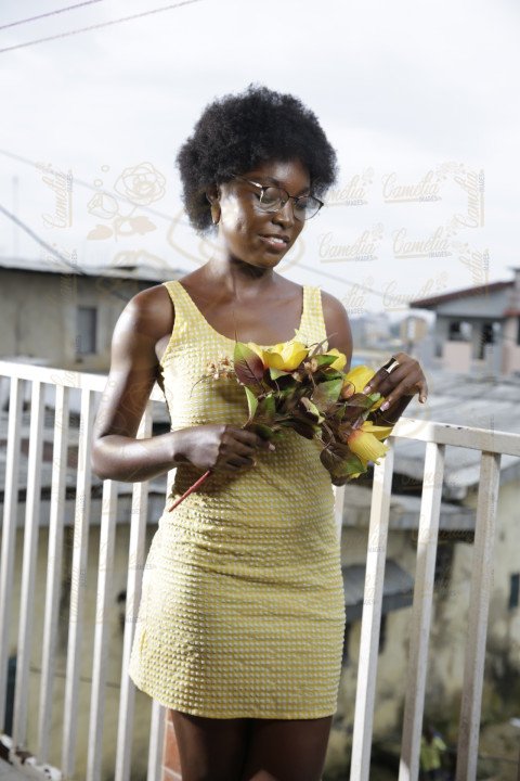 jeune femme africaine noir belle féminisme mere humaine cheveux afro lunette vision regard yeux style decontracté fleur rose milieu exterieur teint chocolatSimilar Photos