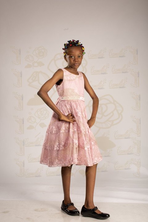 jeune petite fille africaine mains reins coiffure matoba robe rose chaussure noire