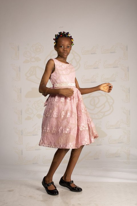 jeune petite fille africaine mannequin coiffure matoba robe rose chaussure noire