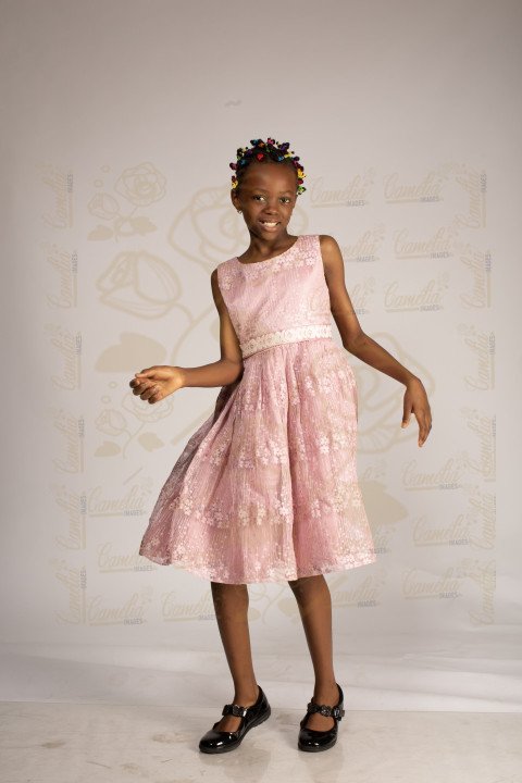 jeune petite fille africaine mannequin coiffure matoba robe rose chaussure noire