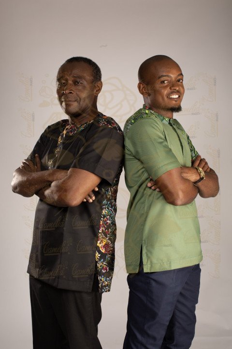 Hommes vieux jeune dos a dos paire noire chaussure blanche bras croisés beau sourire
