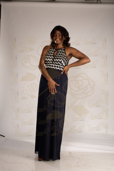 Portrait Jeune femme africaine robe blanc noire main reins rouge lèvre