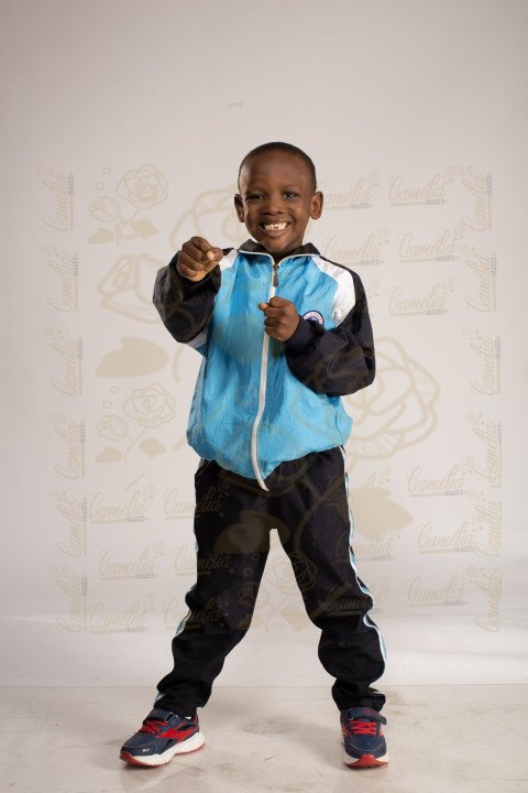 Jeune petit garçon africain tenue sport expression visage grimasse sourire