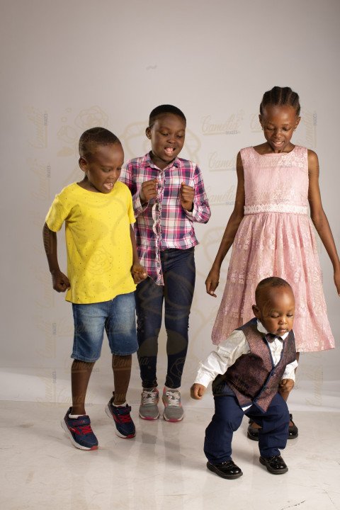 Y7A3598 copieFamille jeune bébé enfant garçon fille t-shirt jaune chemise carrelé robe rose jacket