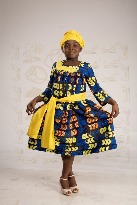 Jeune petite fille petit frère ensemble Gand bleu africain foulard jaune