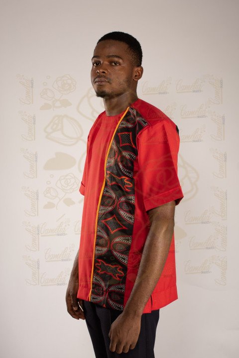 Portrait Bel homme africain jeune veste Bordeau design Afrique pantalon noir