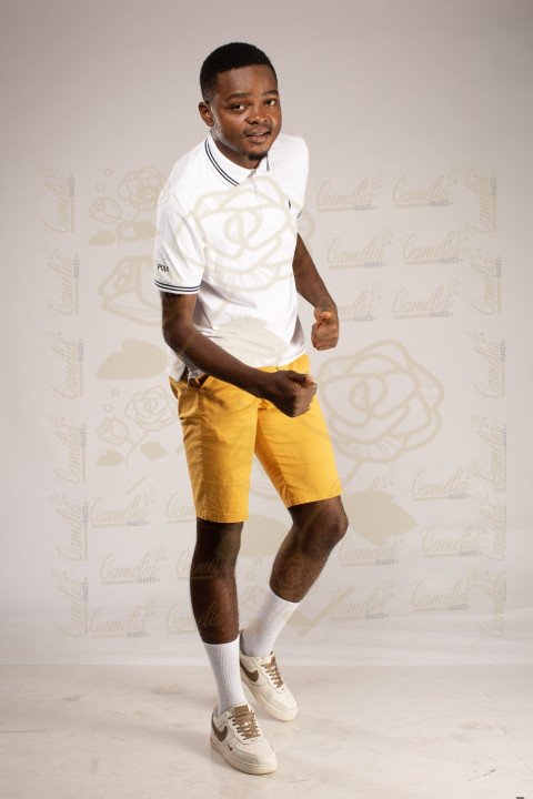Bel homme africain polo blanc culotte jaune chaussettes tennis blanches
