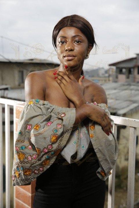 jeune petite fille africaine pause photo coiffure matoba robe rose chaussure noire