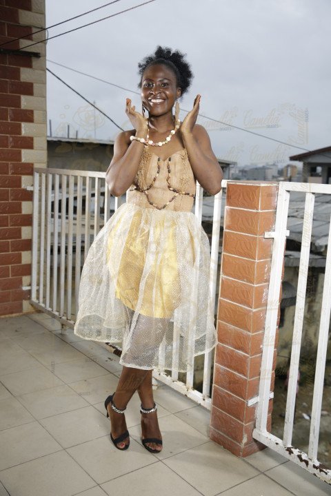 Jeune femme robe colliers boucles traditionnelle teint caramel