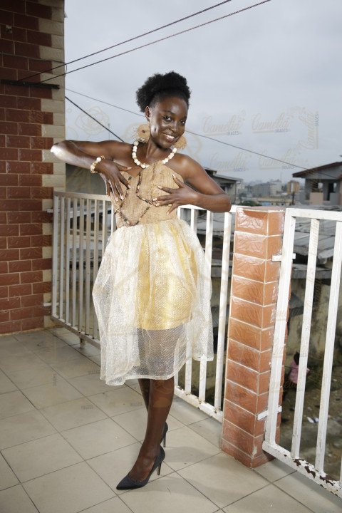 Gestuel Jeune femme robe colliers boucles traditionnelle teint caramel