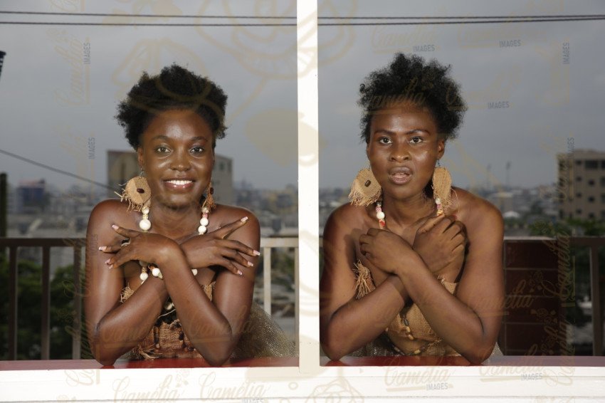 Femme Africaine cheveux afro teint chocolat vêtement africain