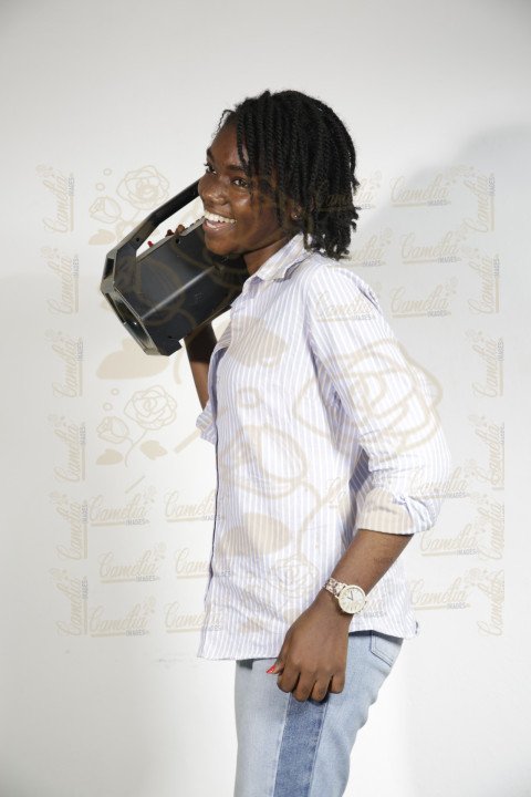 Femme styliste teint chocolat souriante style vestimentaire Africain