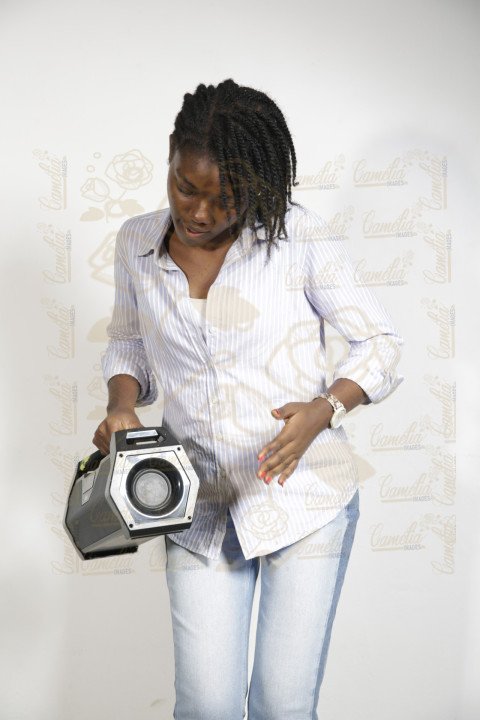 Jeune femme robe colliers boucles traditionnelle teint caramel