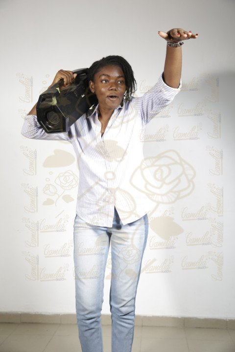 Jeune homme africain teint claire tenue Afrique pantalon noir tennis blanche mains poches