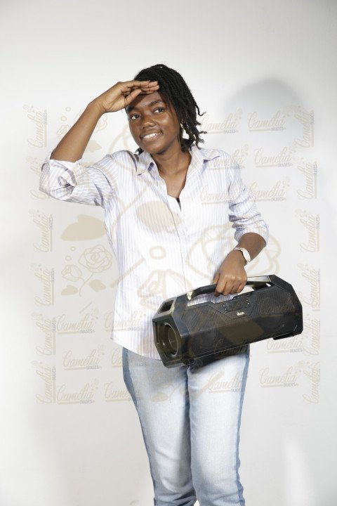 Maman Africaine maquiallage robe fleurit chaise cuir noir