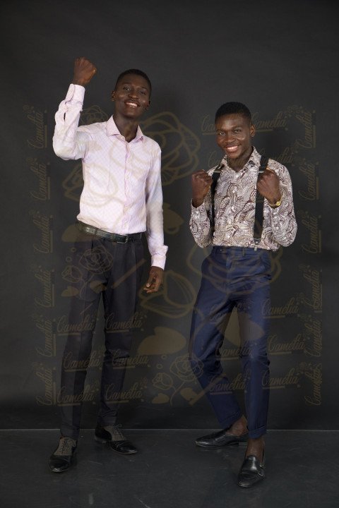 Frères Jumeaux africain teint noir pantalon super cent chemise fleurit victoire