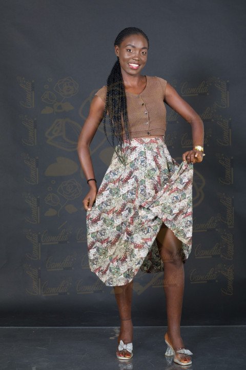 Top model africain teint chocolat robe fleurit coiffure rasta talon transparente