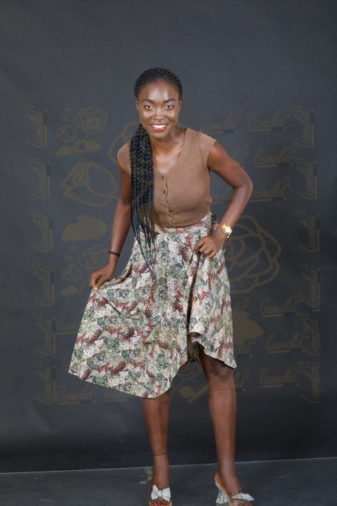 Top model africain teint chocolat robe fleurit coiffure rasta talon transparente