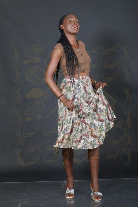 Top model africain teint chocolat robe fleurit coiffure rasta talon transparente