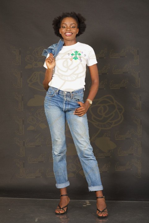 Jeune fille africaine coiffure afro jolie sourire fond de teint posture mannequin