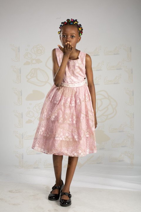 Jeune petite africaine coiffure matoba teint claire robe rose chaussure noire gestuel mains