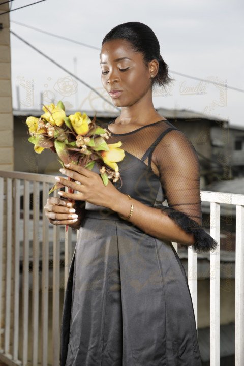 Femme Africiane Teint bronzé bouquet fleurs onglerie couleurs blanche