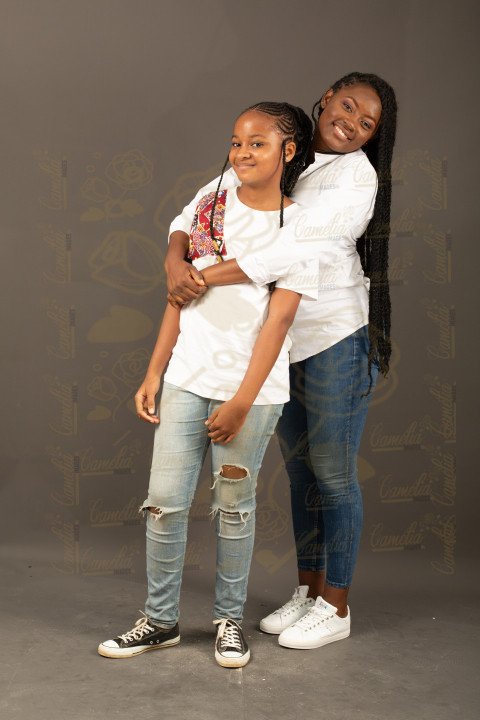 Une mère tenant sa fille dans ses bras, joyeuses , avec un style décontracté