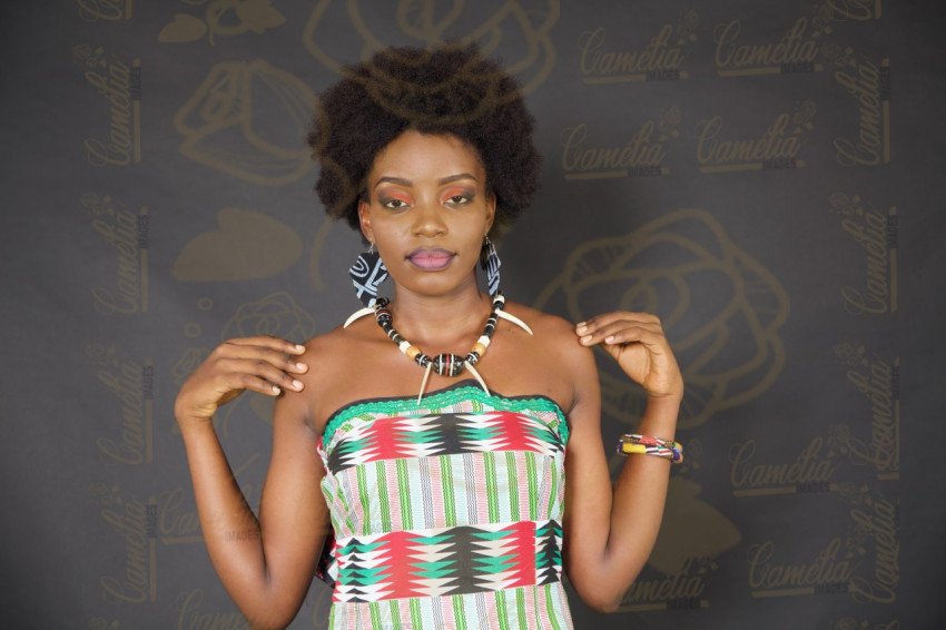 Jeune femme Africaine coiffure afro boucle afritude collier dent animal