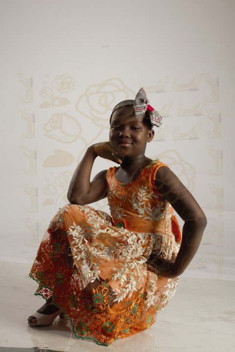 Jeune Homme africain tenue traditionnelle fauteuil rouge