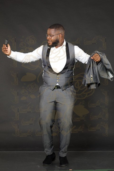 Homme africain barbe noire lunette costumes 3 pièces selfie